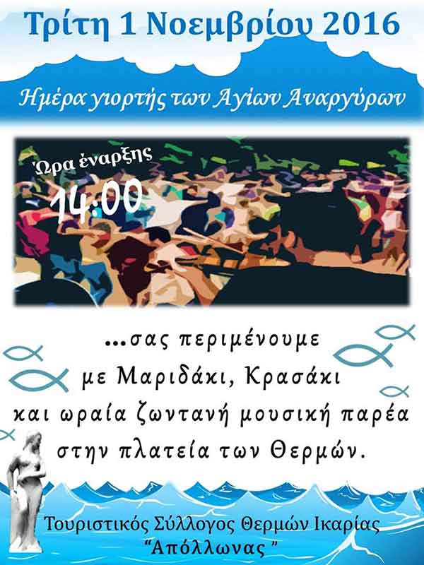 Τρίτη 1 Νοεμβρίου στην γιορτή των Αγίων Αναργύρων
