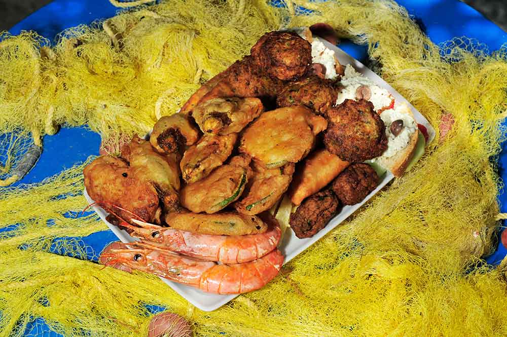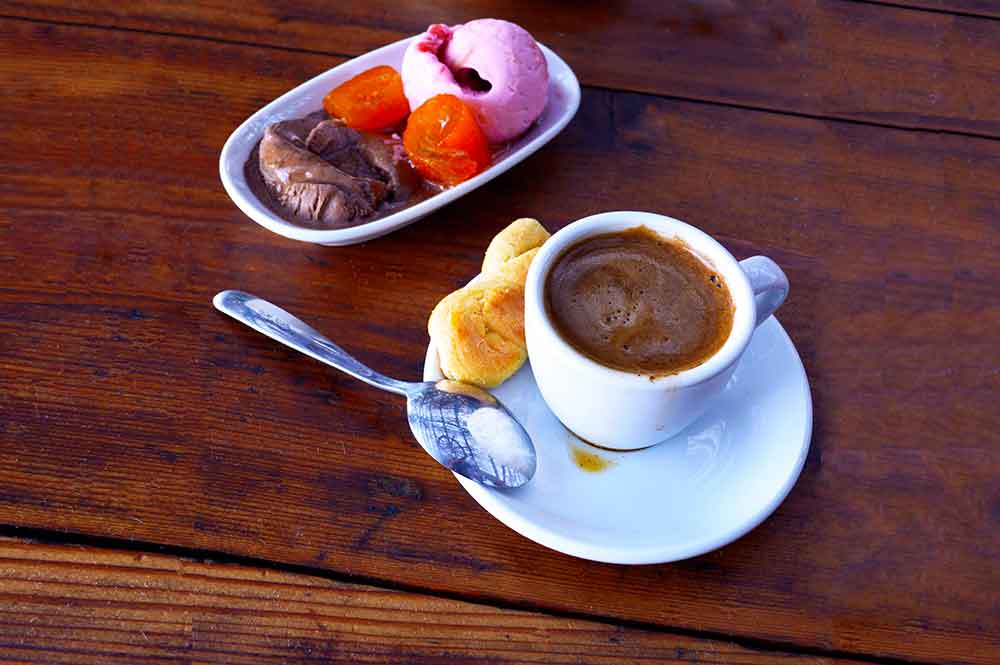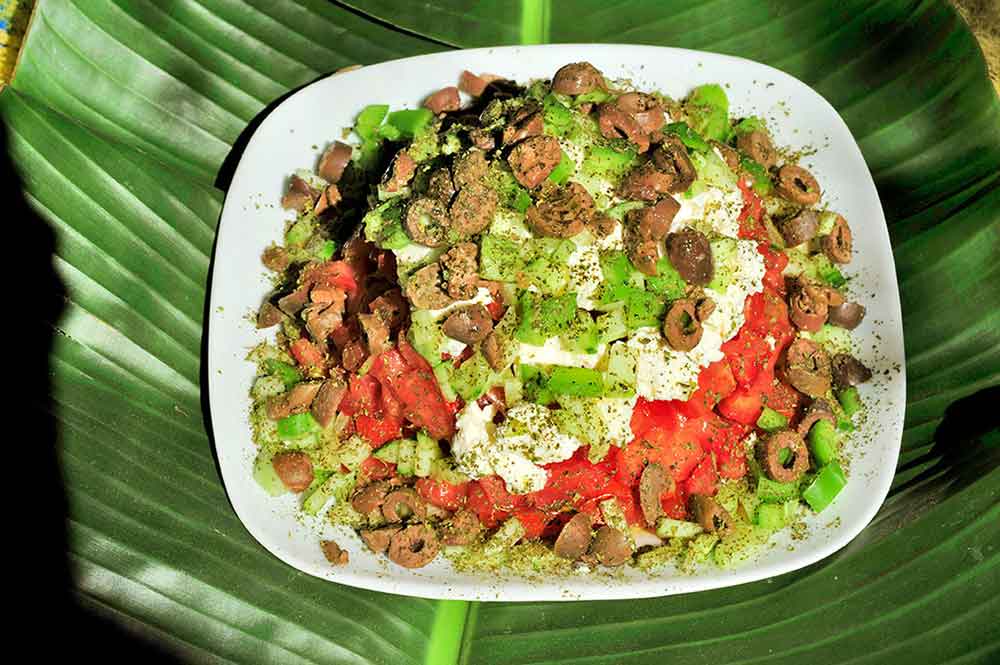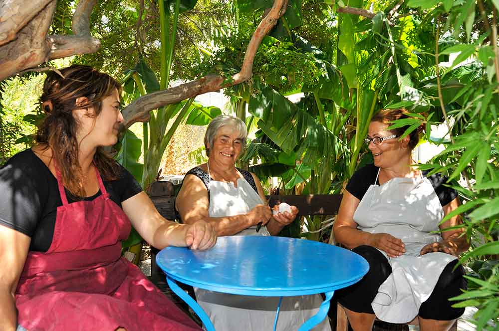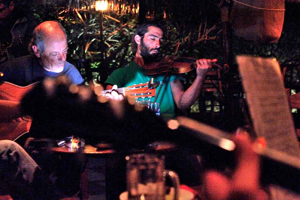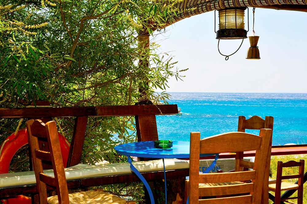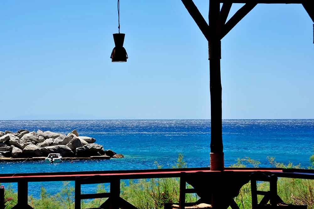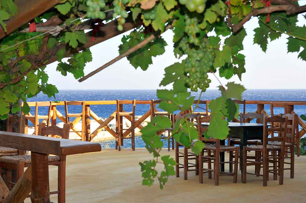 A partir du matin (10:00), nous offrons le petit dejeuner, cafe et jus de fruits. Puis, avec l'ouzo et le celebre varietes maman Rica et vers midi par de beaux plats faits maison, avec spaghetti aux crevettes fines, divers plats faits maison et les ragouts.